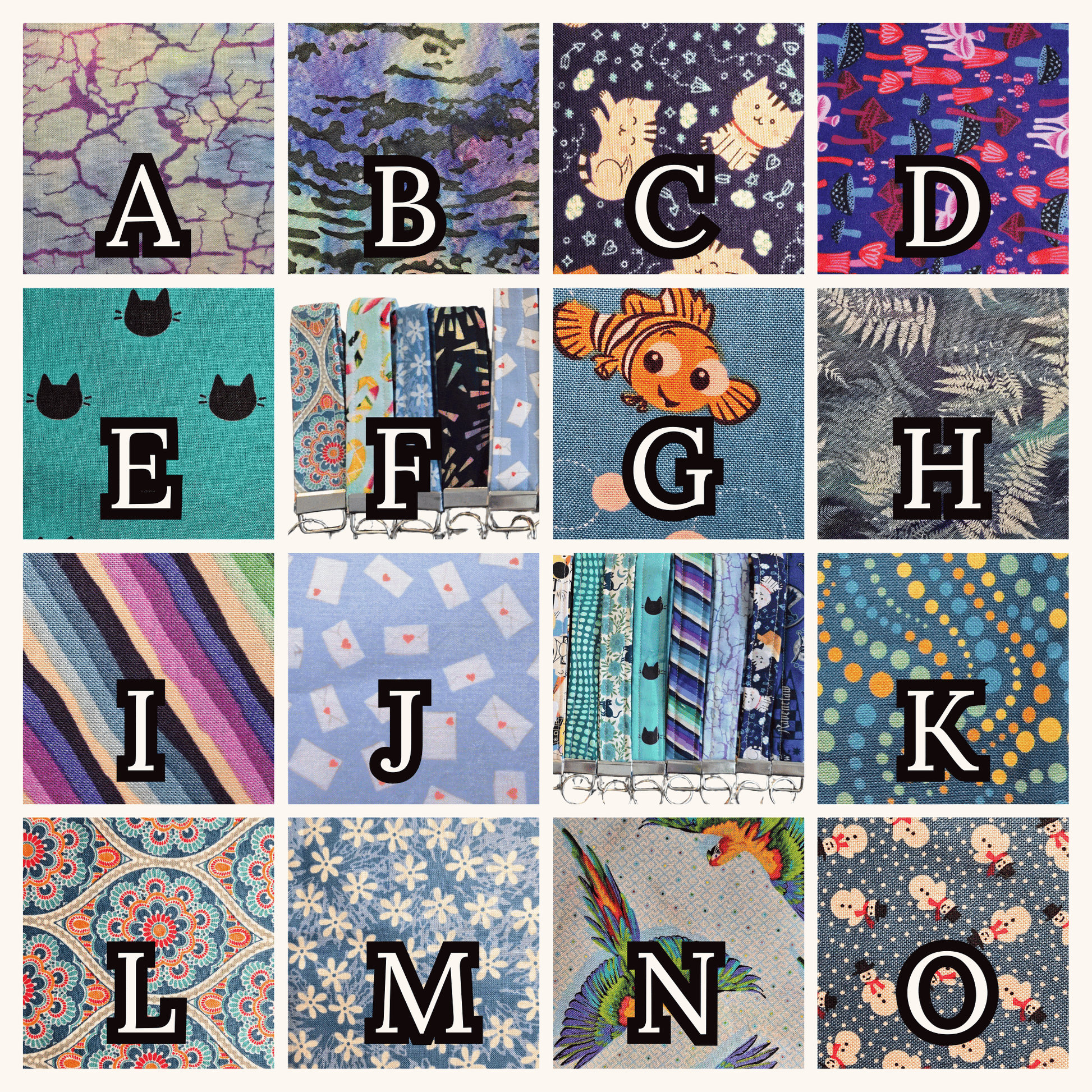 Blue Patterned Wristlet Keychain - Handmade Fabric Key Fob
